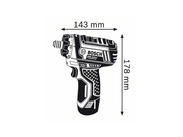 Obrtni moment, maks. (tvrdo/meko) 30 / 15 Nm Broj obrtaja u praznom hodu (1. brzina / 2. brzina) 0 - 400 / 1.300 min-1 Raspon zatezanja stezne glave, min./maks. 1 / 10 mm Napon akumulatora 10,8 V Kapacitet akumulatora 2,0 Ah Masa sa akumulatorom 0,95 kg Stepeni obrtnog momenta 20+1 Prečnik burgije za drvo, maks. 19 mm Prečnik bušenja čelika, maks. 10 mm Prečnik zavrtnjeva, maks. 7 mm